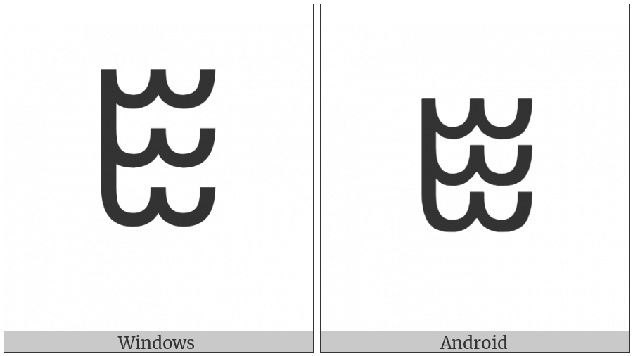 The image below shows how the “Vai Syllable O” symbol might look like on different operating systems. If the font in which this web site is displayed does not contain the symbol and there is no fallback font able to render it, you can use the image below to get an idea of what it should look like.