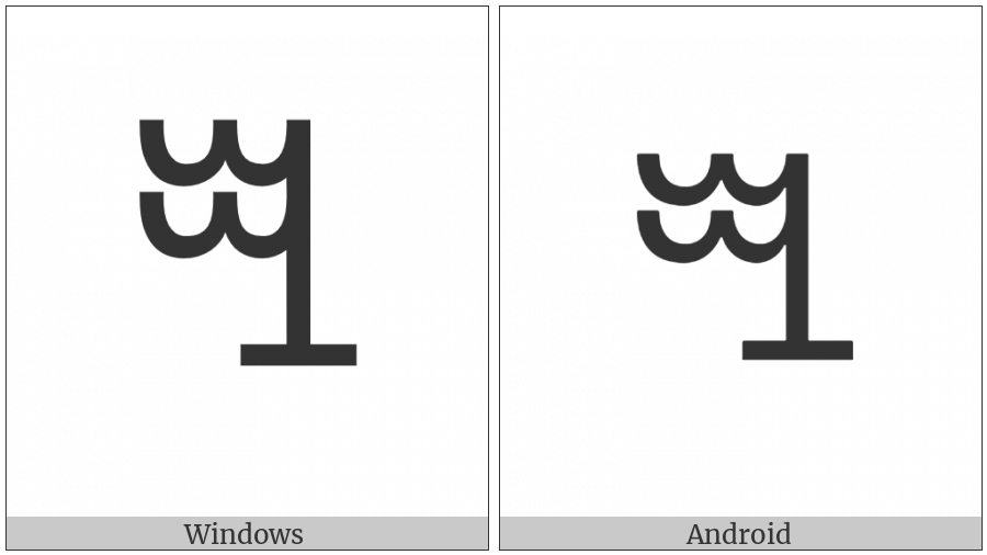 The image below shows how the “Vai Syllable Kpo” symbol might look like on different operating systems. If the font in which this web site is displayed does not contain the symbol and there is no fallback font able to render it, you can use the image below to get an idea of what it should look like.