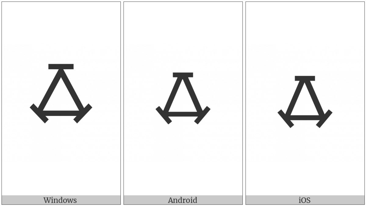 The image below shows how the “Vai Syllable Gbo” symbol might look like on different operating systems. If the font in which this web site is displayed does not contain the symbol and there is no fallback font able to render it, you can use the image below to get an idea of what it should look like.