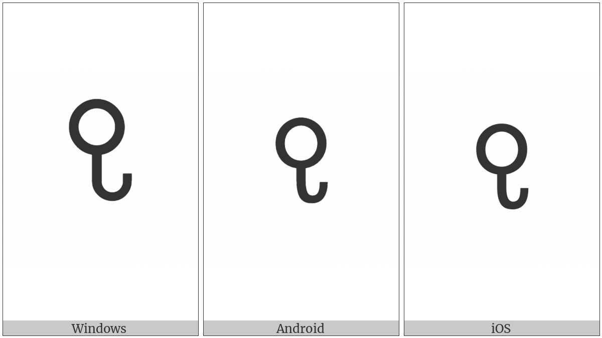 The image below shows how the “Vai Syllable Ndole Do” symbol might look like on different operating systems. If the font in which this web site is displayed does not contain the symbol and there is no fallback font able to render it, you can use the image below to get an idea of what it should look like.