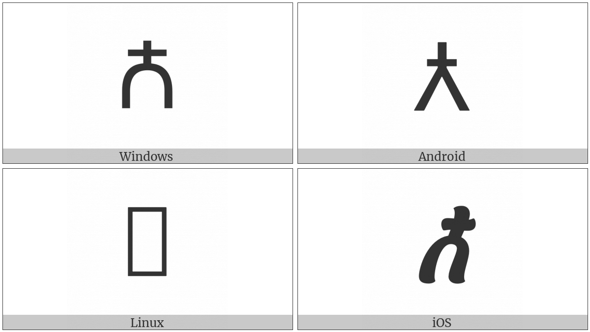 The image below shows how the “Cyrillic Capital Letter Djerv” symbol might look like on different operating systems. If the font in which this web site is displayed does not contain the symbol and there is no fallback font able to render it, you can use the image below to get an idea of what it should look like.