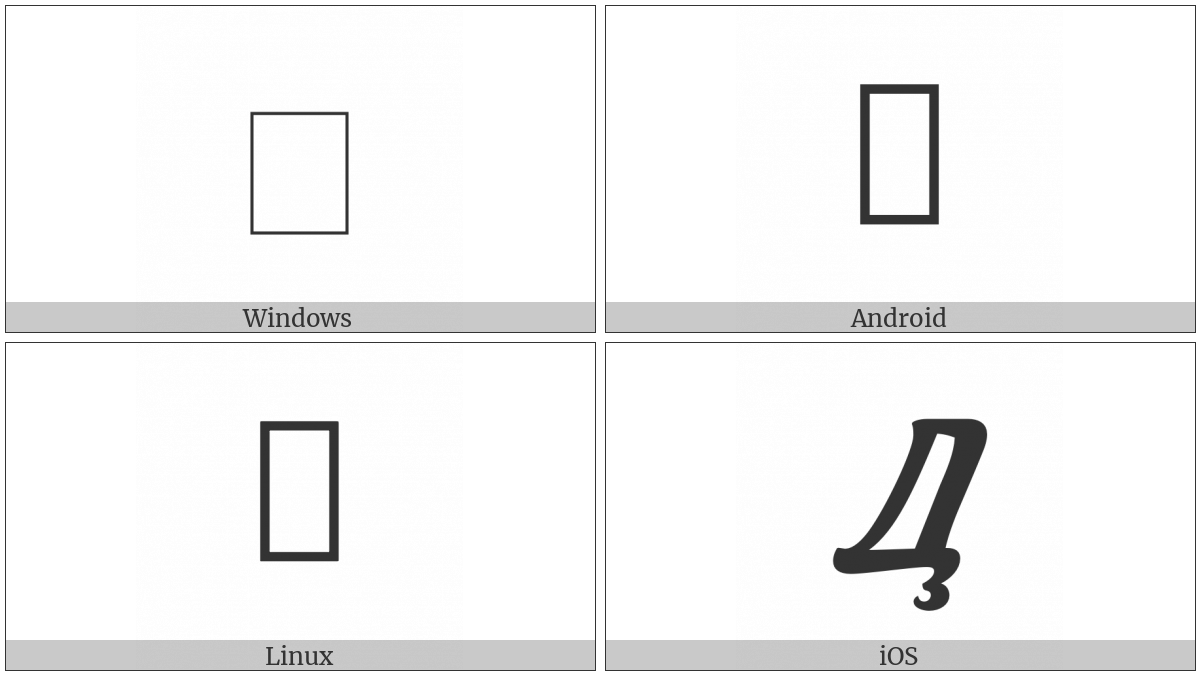 The image below shows how the “Cyrillic Capital Letter Dzze” symbol might look like on different operating systems. If the font in which this web site is displayed does not contain the symbol and there is no fallback font able to render it, you can use the image below to get an idea of what it should look like.