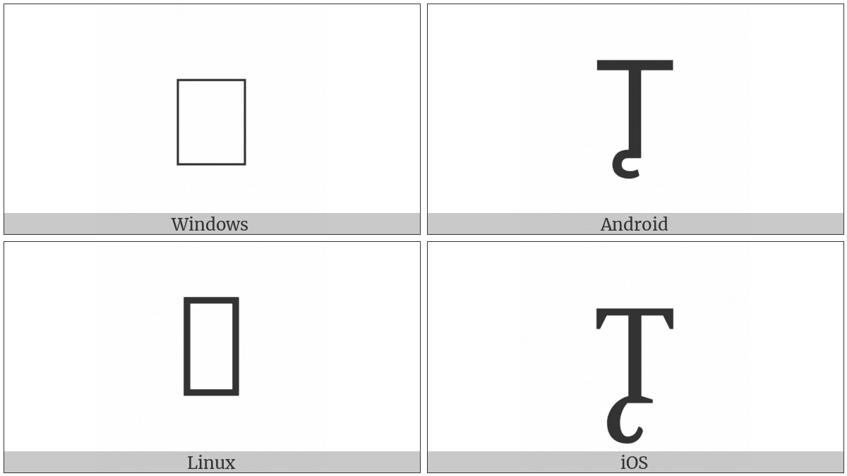 The image below shows how the “Cyrillic Capital Letter Tsse” symbol might look like on different operating systems. If the font in which this web site is displayed does not contain the symbol and there is no fallback font able to render it, you can use the image below to get an idea of what it should look like.