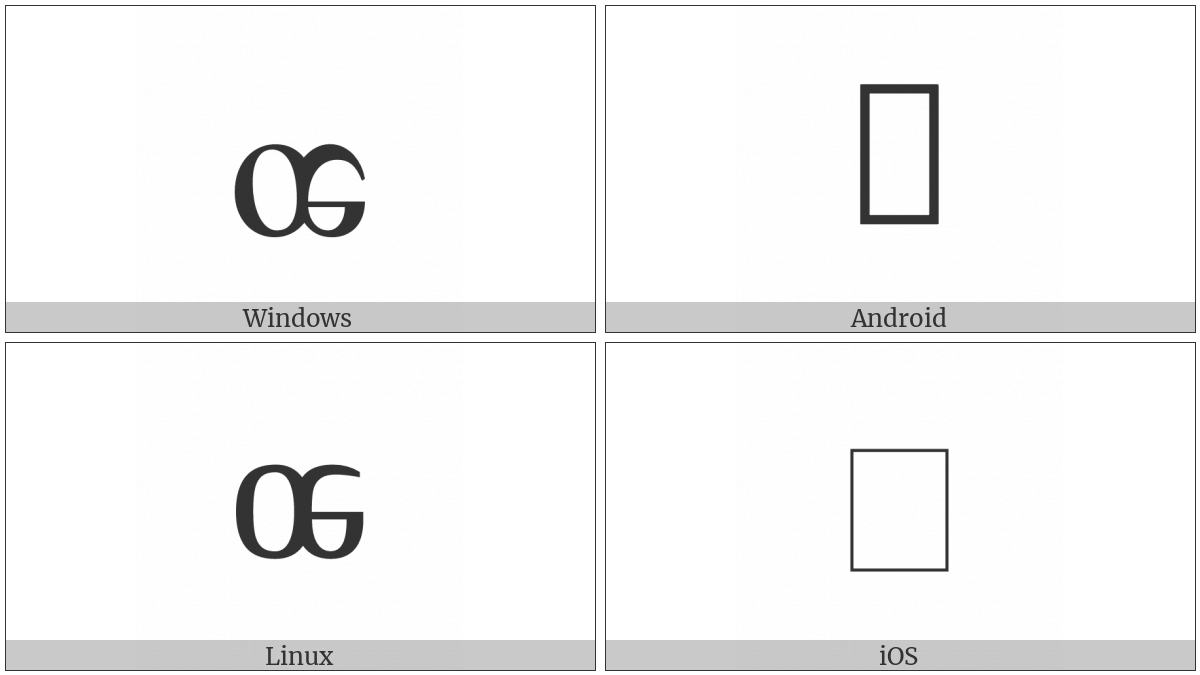The image below shows how the “Latin Small Letter Inverted Oe” symbol might look like on different operating systems. If the font in which this web site is displayed does not contain the symbol and there is no fallback font able to render it, you can use the image below to get an idea of what it should look like.
