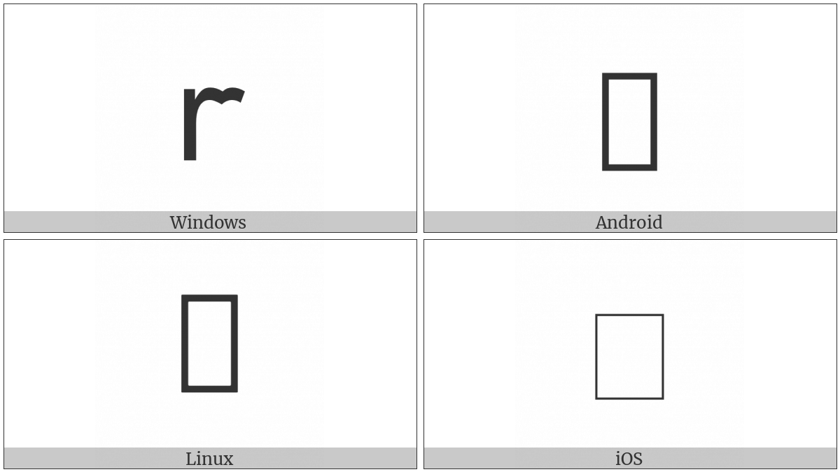 The image below shows how the “Latin Small Letter Double R” symbol might look like on different operating systems. If the font in which this web site is displayed does not contain the symbol and there is no fallback font able to render it, you can use the image below to get an idea of what it should look like.