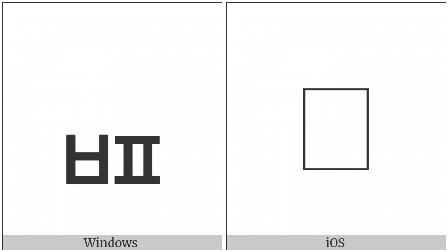 The image below shows how the “Hangul Jongseong Pieup-Phieuph” symbol might look like on different operating systems. If the font in which this web site is displayed does not contain the symbol and there is no fallback font able to render it, you can use the image below to get an idea of what it should look like.