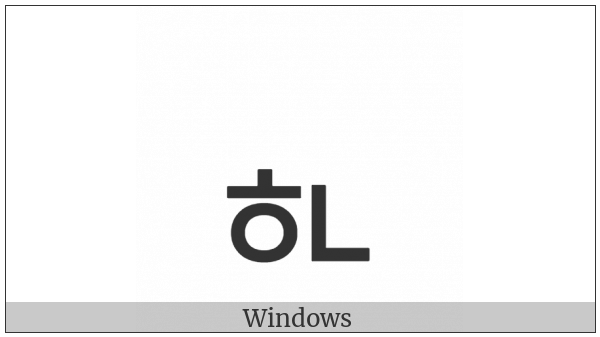 The image below shows how the “Hangul Jongseong Hieuh-Nieun” symbol might look like on different operating systems. If the font in which this web site is displayed does not contain the symbol and there is no fallback font able to render it, you can use the image below to get an idea of what it should look like.