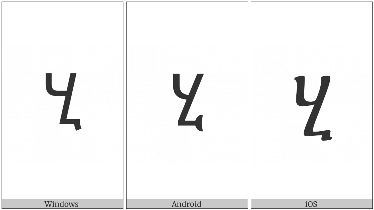 The image below shows how the “Ethiopic Syllable Hi” symbol might look like on different operating systems. If the font in which this web site is displayed does not contain the symbol and there is no fallback font able to render it, you can use the image below to get an idea of what it should look like.