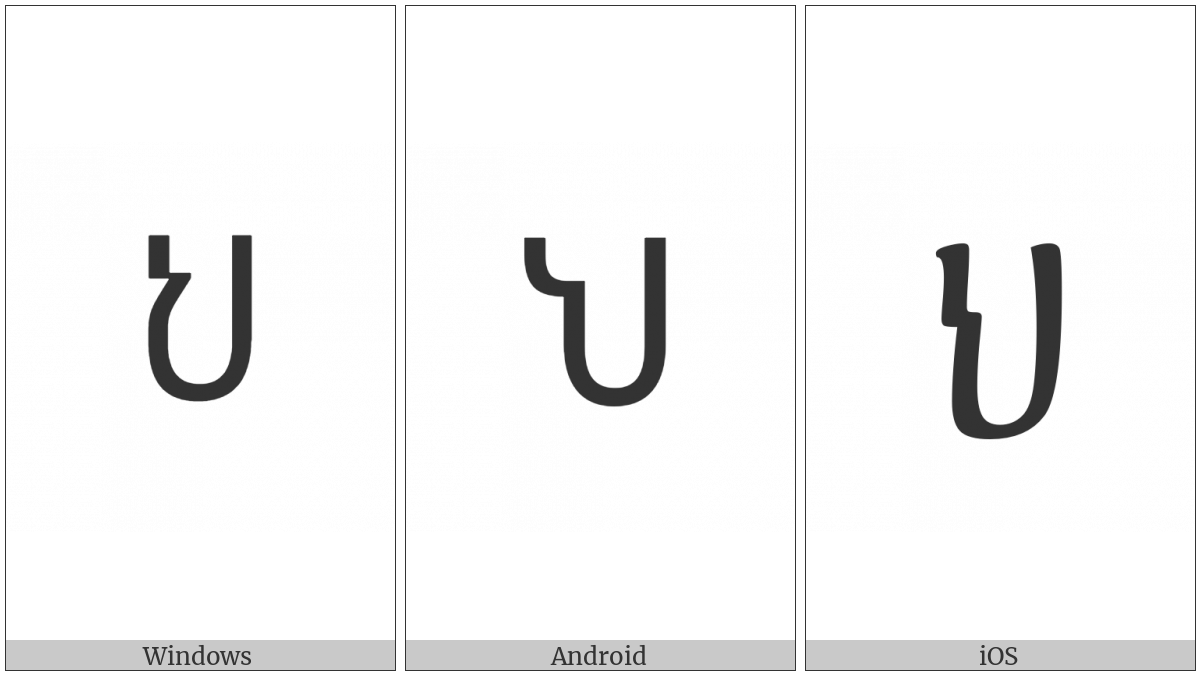 The image below shows how the “Ethiopic Syllable He” symbol might look like on different operating systems. If the font in which this web site is displayed does not contain the symbol and there is no fallback font able to render it, you can use the image below to get an idea of what it should look like.
