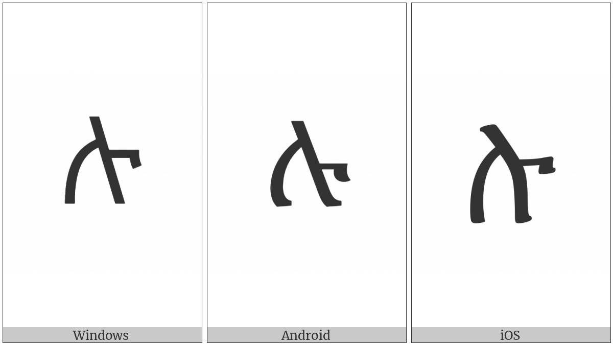 The image below shows how the “Ethiopic Syllable Lu” symbol might look like on different operating systems. If the font in which this web site is displayed does not contain the symbol and there is no fallback font able to render it, you can use the image below to get an idea of what it should look like.