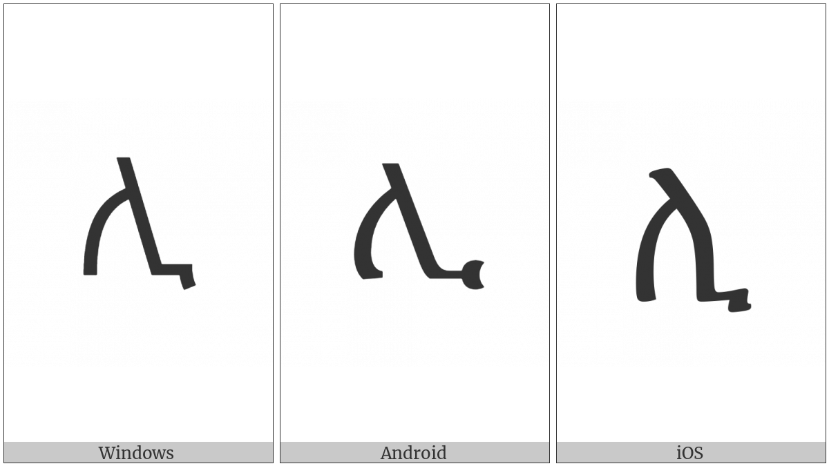 The image below shows how the “Ethiopic Syllable Li” symbol might look like on different operating systems. If the font in which this web site is displayed does not contain the symbol and there is no fallback font able to render it, you can use the image below to get an idea of what it should look like.