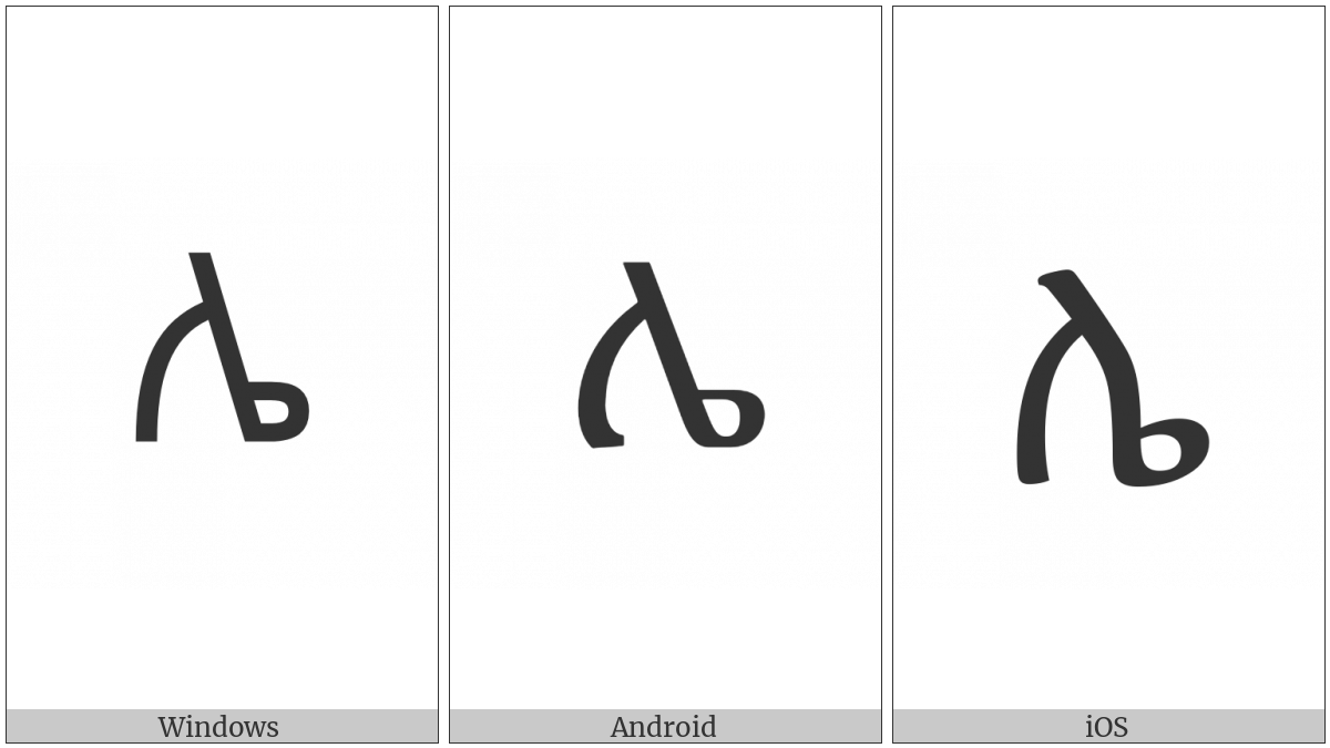 The image below shows how the “Ethiopic Syllable Lee” symbol might look like on different operating systems. If the font in which this web site is displayed does not contain the symbol and there is no fallback font able to render it, you can use the image below to get an idea of what it should look like.