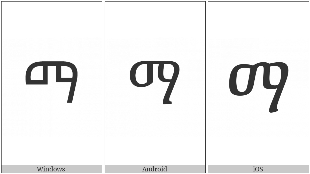 The image below shows how the “Ethiopic Syllable Maa” symbol might look like on different operating systems. If the font in which this web site is displayed does not contain the symbol and there is no fallback font able to render it, you can use the image below to get an idea of what it should look like.