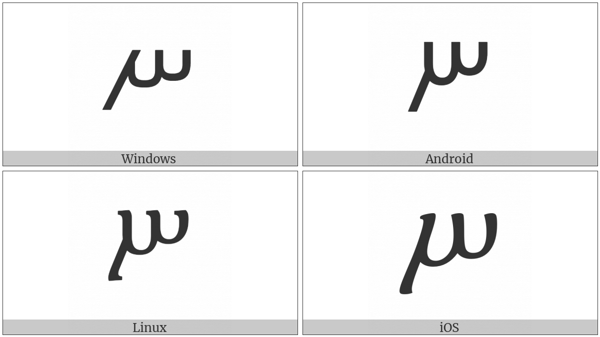 The image below shows how the “Ethiopic Syllable Sze” symbol might look like on different operating systems. If the font in which this web site is displayed does not contain the symbol and there is no fallback font able to render it, you can use the image below to get an idea of what it should look like.