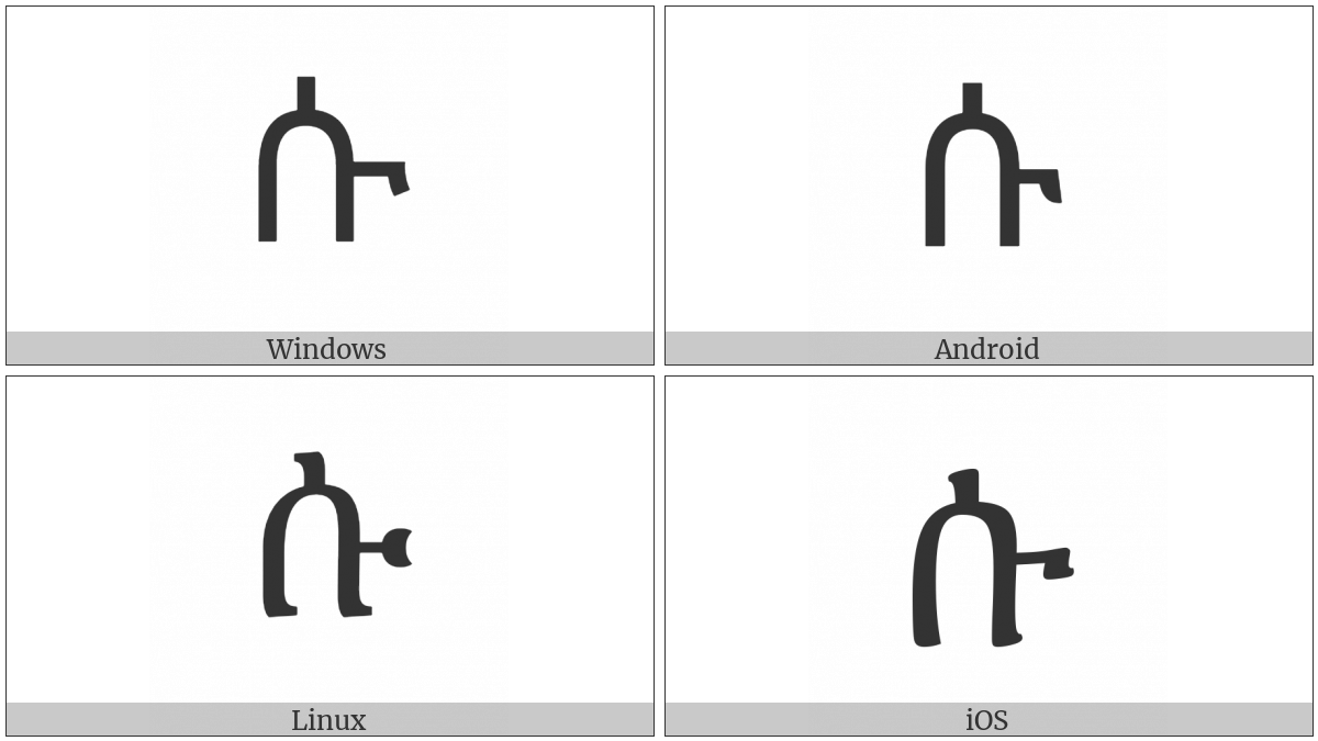 The image below shows how the “Ethiopic Syllable Su” symbol might look like on different operating systems. If the font in which this web site is displayed does not contain the symbol and there is no fallback font able to render it, you can use the image below to get an idea of what it should look like.