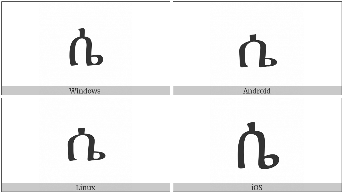 The image below shows how the “Ethiopic Syllable See” symbol might look like on different operating systems. If the font in which this web site is displayed does not contain the symbol and there is no fallback font able to render it, you can use the image below to get an idea of what it should look like.
