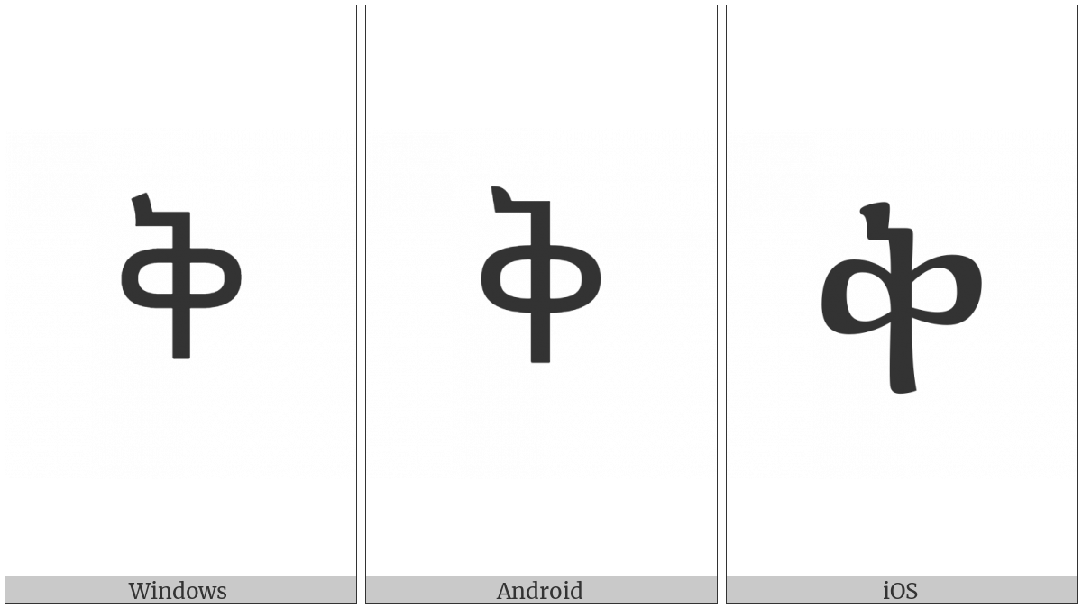 The image below shows how the “Ethiopic Syllable Qe” symbol might look like on different operating systems. If the font in which this web site is displayed does not contain the symbol and there is no fallback font able to render it, you can use the image below to get an idea of what it should look like.
