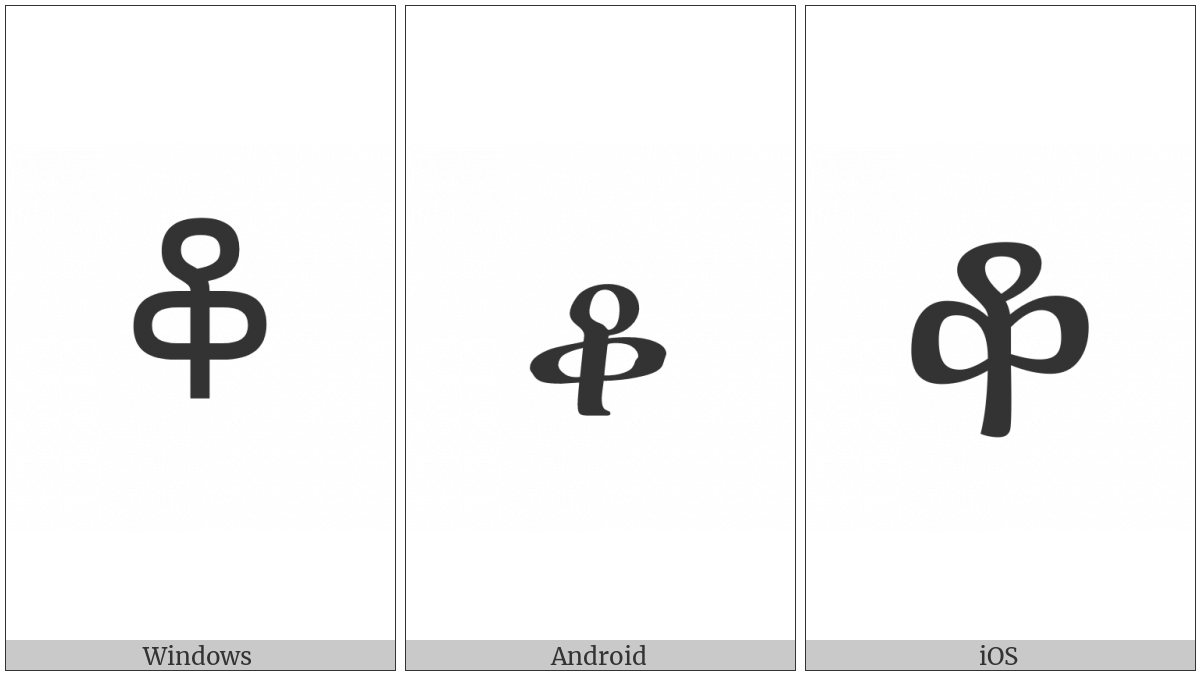 The image below shows how the “Ethiopic Syllable Qo” symbol might look like on different operating systems. If the font in which this web site is displayed does not contain the symbol and there is no fallback font able to render it, you can use the image below to get an idea of what it should look like.