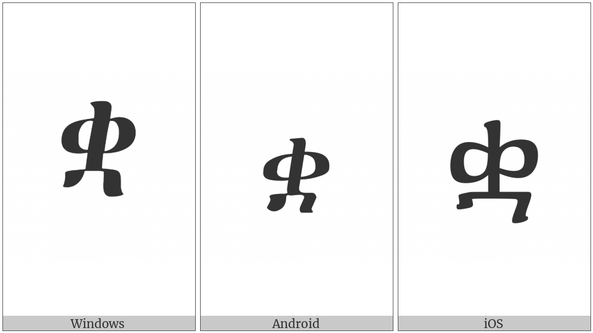 The image below shows how the “Ethiopic Syllable Qwaa” symbol might look like on different operating systems. If the font in which this web site is displayed does not contain the symbol and there is no fallback font able to render it, you can use the image below to get an idea of what it should look like.