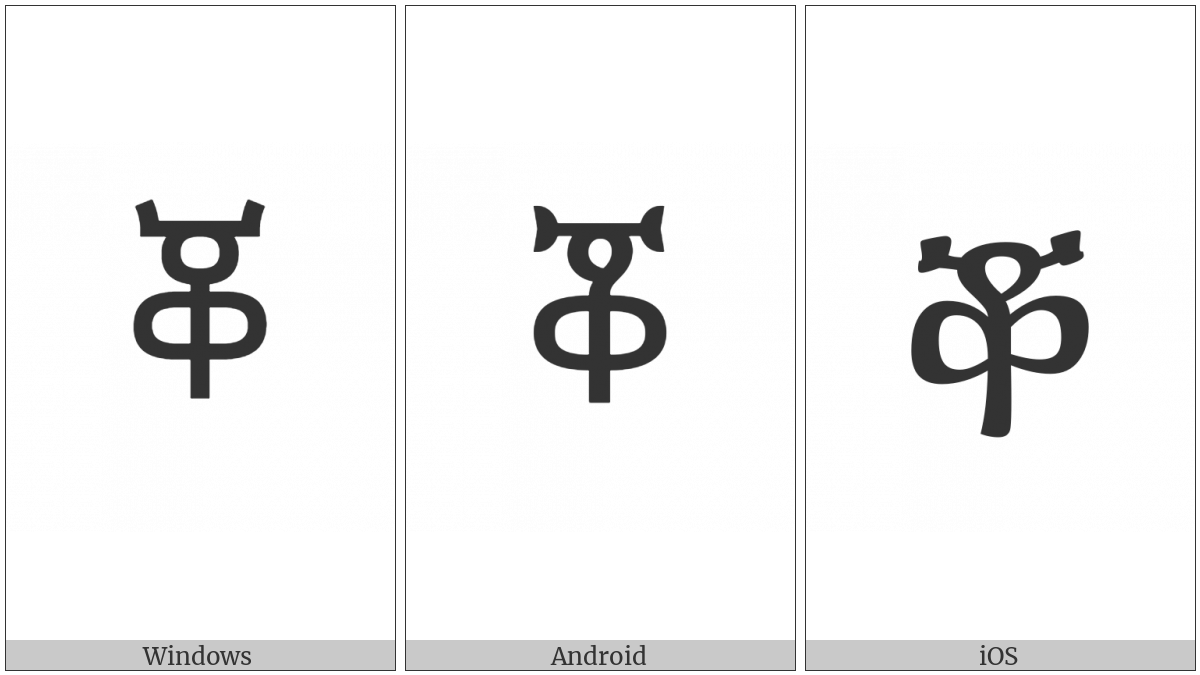 The image below shows how the “Ethiopic Syllable Qho” symbol might look like on different operating systems. If the font in which this web site is displayed does not contain the symbol and there is no fallback font able to render it, you can use the image below to get an idea of what it should look like.