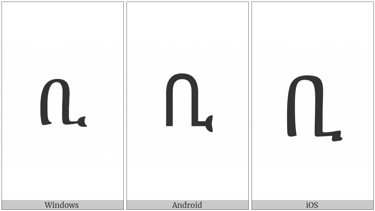 The image below shows how the “Ethiopic Syllable Bi” symbol might look like on different operating systems. If the font in which this web site is displayed does not contain the symbol and there is no fallback font able to render it, you can use the image below to get an idea of what it should look like.