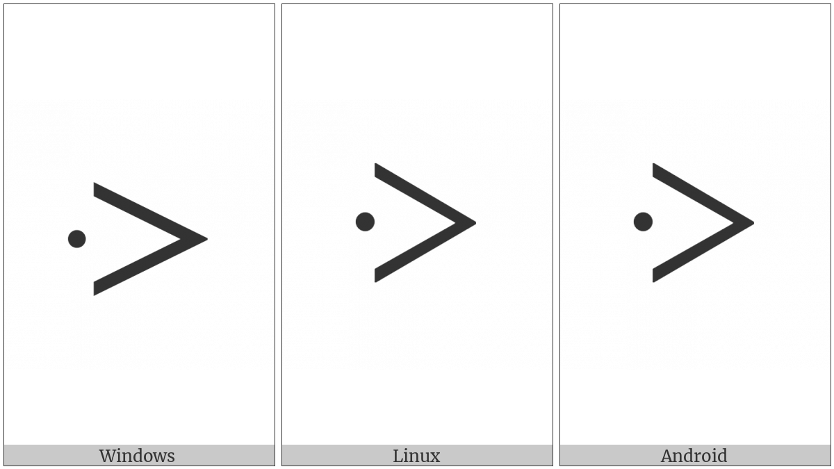 The image below shows how the “Canadian Syllabics Pwo” symbol might look like on different operating systems. If the font in which this web site is displayed does not contain the symbol and there is no fallback font able to render it, you can use the image below to get an idea of what it should look like.