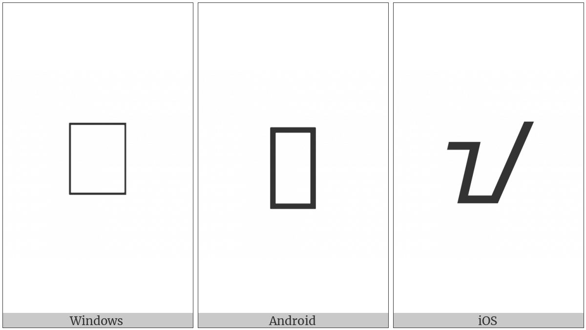 The image below shows how the “Buhid Letter A” symbol might look like on different operating systems. If the font in which this web site is displayed does not contain the symbol and there is no fallback font able to render it, you can use the image below to get an idea of what it should look like.