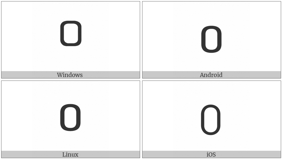 The image below shows how the “Khmer Digit Zero” symbol might look like on different operating systems. If the font in which this web site is displayed does not contain the symbol and there is no fallback font able to render it, you can use the image below to get an idea of what it should look like.