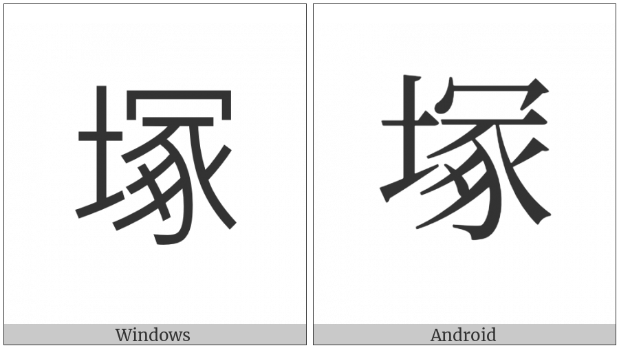 The image below shows how the “Cjk Compatibility Ideograph-Fa10” symbol might look like on different operating systems. If the font in which this web site is displayed does not contain the symbol and there is no fallback font able to render it, you can use the image below to get an idea of what it should look like.