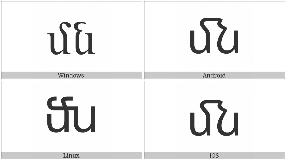 The image below shows how the “Armenian Small Ligature Men Now” symbol might look like on different operating systems. If the font in which this web site is displayed does not contain the symbol and there is no fallback font able to render it, you can use the image below to get an idea of what it should look like.