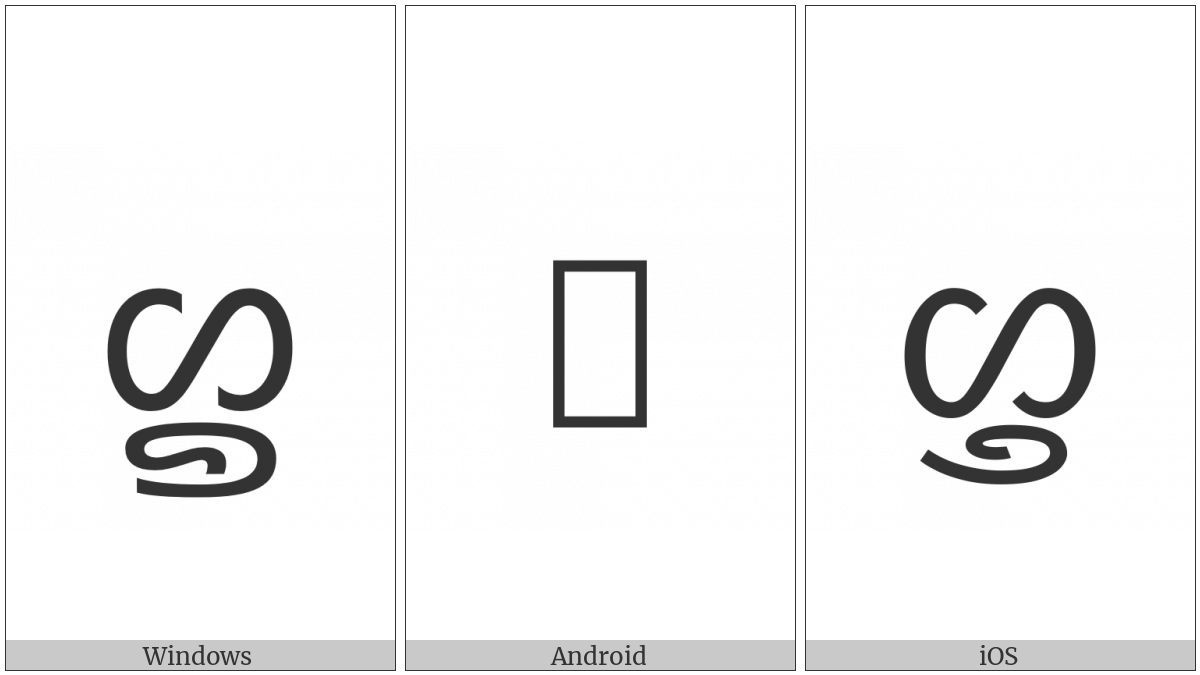 The image below shows how the “New Tai Lue Letter High Nga” symbol might look like on different operating systems. If the font in which this web site is displayed does not contain the symbol and there is no fallback font able to render it, you can use the image below to get an idea of what it should look like.