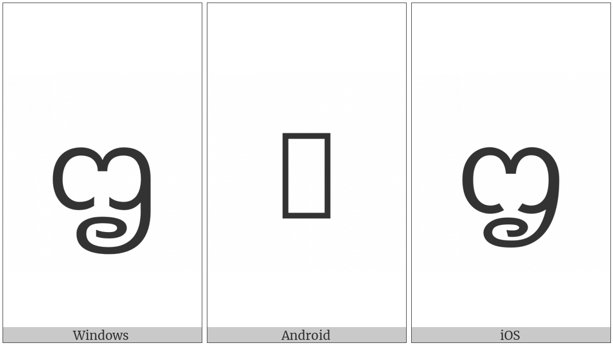 The image below shows how the “New Tai Lue Letter Low Pa” symbol might look like on different operating systems. If the font in which this web site is displayed does not contain the symbol and there is no fallback font able to render it, you can use the image below to get an idea of what it should look like.