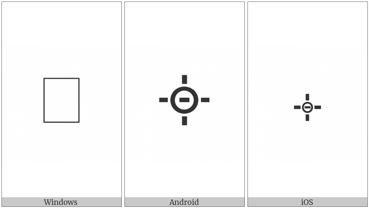 The image below shows how the “Aegean Number Ten Thousand” symbol might look like on different operating systems. If the font in which this web site is displayed does not contain the symbol and there is no fallback font able to render it, you can use the image below to get an idea of what it should look like.