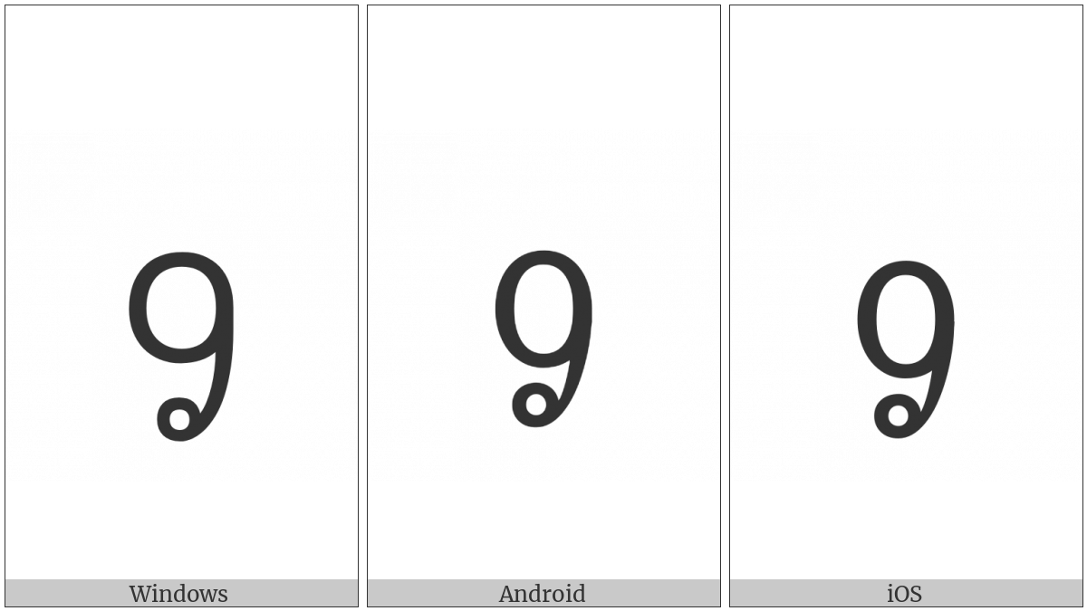 The image below shows how the “New Tai Lue Letter Final V” symbol might look like on different operating systems. If the font in which this web site is displayed does not contain the symbol and there is no fallback font able to render it, you can use the image below to get an idea of what it should look like.