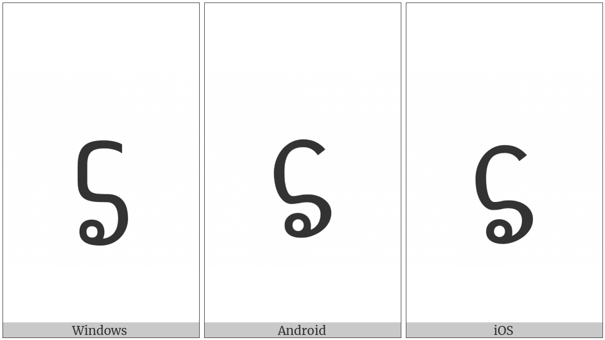 The image below shows how the “New Tai Lue Letter Final N” symbol might look like on different operating systems. If the font in which this web site is displayed does not contain the symbol and there is no fallback font able to render it, you can use the image below to get an idea of what it should look like.