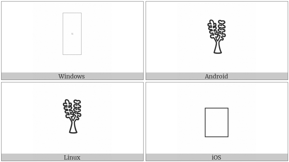 The image below shows how the “Phaistos Disc Sign Vine” symbol might look like on different operating systems. If the font in which this web site is displayed does not contain the symbol and there is no fallback font able to render it, you can use the image below to get an idea of what it should look like.