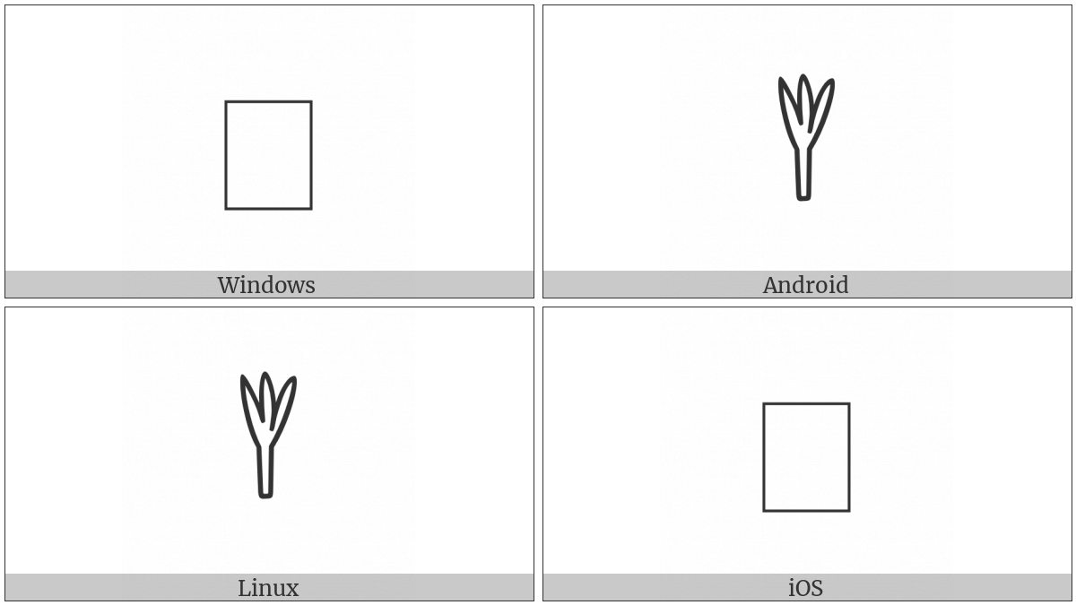 The image below shows how the “Phaistos Disc Sign Lily” symbol might look like on different operating systems. If the font in which this web site is displayed does not contain the symbol and there is no fallback font able to render it, you can use the image below to get an idea of what it should look like.