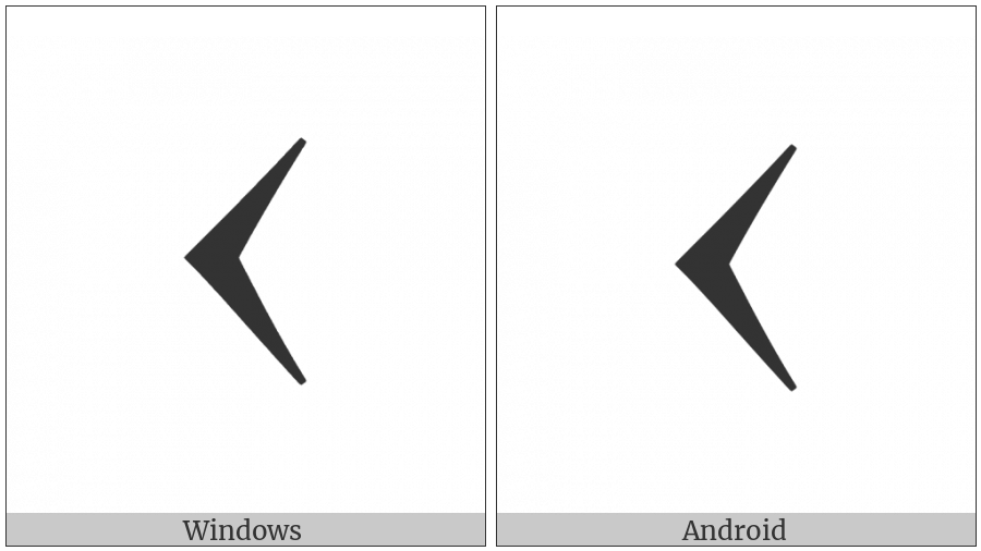 The image below shows how the “Ugaritic Letter Ain” symbol might look like on different operating systems. If the font in which this web site is displayed does not contain the symbol and there is no fallback font able to render it, you can use the image below to get an idea of what it should look like.