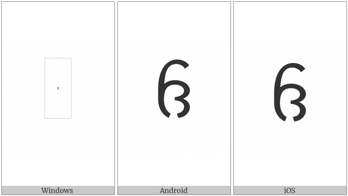 The image below shows how the “Tai Tham Letter Low Sa” symbol might look like on different operating systems. If the font in which this web site is displayed does not contain the symbol and there is no fallback font able to render it, you can use the image below to get an idea of what it should look like.