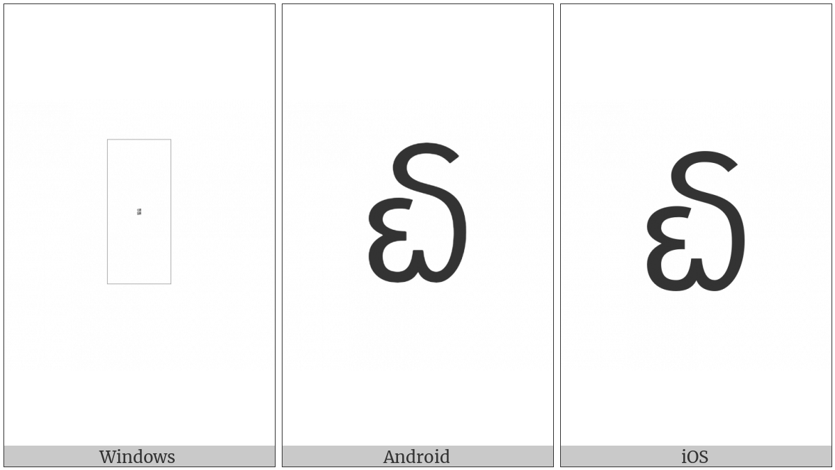 The image below shows how the “Tai Tham Letter High Fa” symbol might look like on different operating systems. If the font in which this web site is displayed does not contain the symbol and there is no fallback font able to render it, you can use the image below to get an idea of what it should look like.