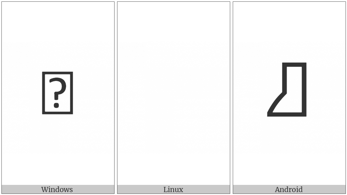 The image below shows how the “Linear A Sign A338” symbol might look like on different operating systems. If the font in which this web site is displayed does not contain the symbol and there is no fallback font able to render it, you can use the image below to get an idea of what it should look like.