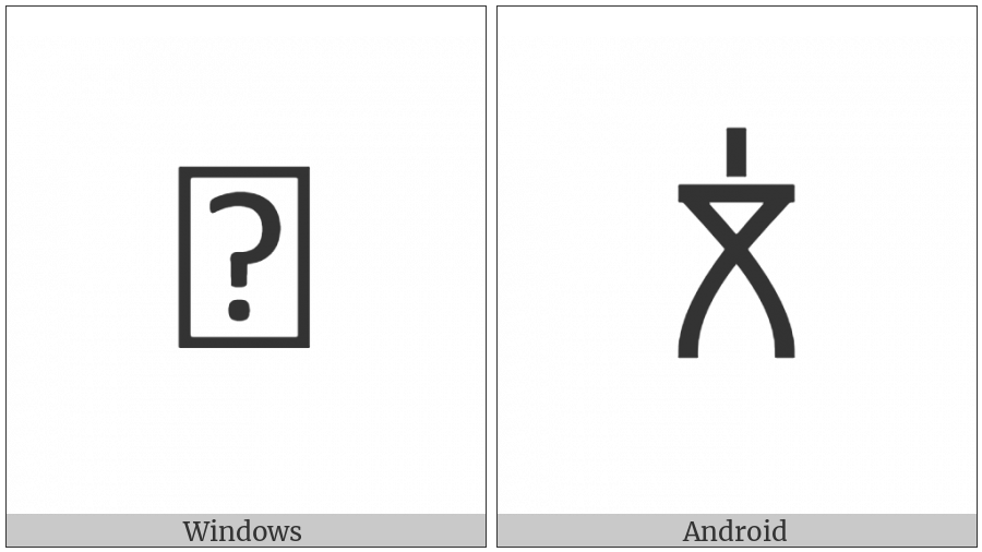 The image below shows how the “Linear A Sign A352” symbol might look like on different operating systems. If the font in which this web site is displayed does not contain the symbol and there is no fallback font able to render it, you can use the image below to get an idea of what it should look like.