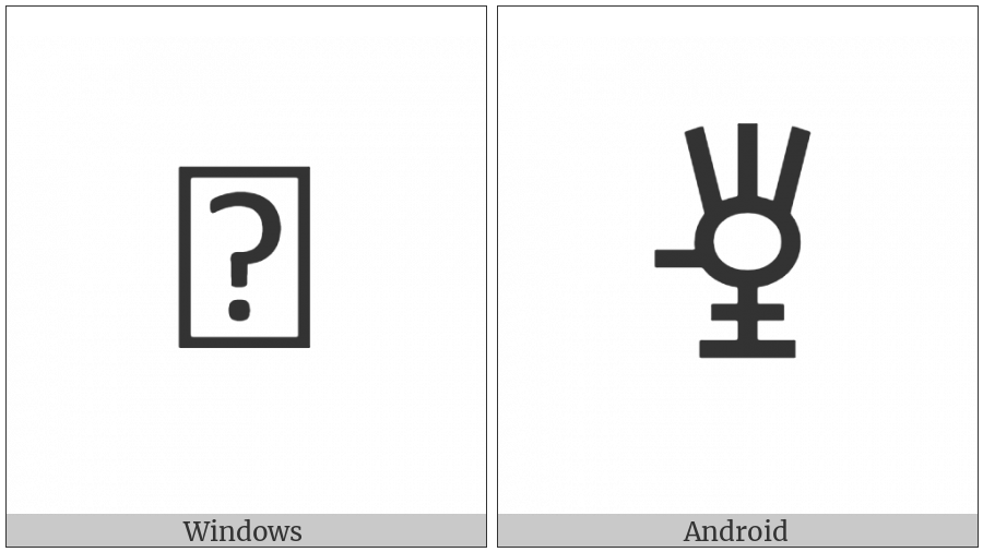 The image below shows how the “Linear A Sign A362” symbol might look like on different operating systems. If the font in which this web site is displayed does not contain the symbol and there is no fallback font able to render it, you can use the image below to get an idea of what it should look like.