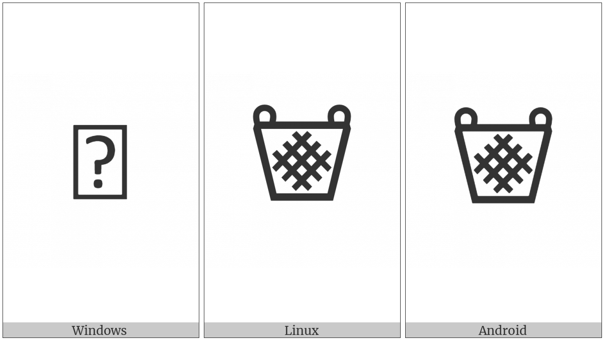 The image below shows how the “Linear A Sign A417-Vas” symbol might look like on different operating systems. If the font in which this web site is displayed does not contain the symbol and there is no fallback font able to render it, you can use the image below to get an idea of what it should look like.