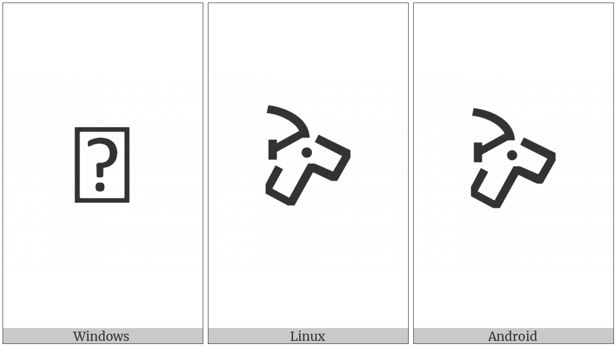 The image below shows how the “Linear A Sign A418-Vas” symbol might look like on different operating systems. If the font in which this web site is displayed does not contain the symbol and there is no fallback font able to render it, you can use the image below to get an idea of what it should look like.