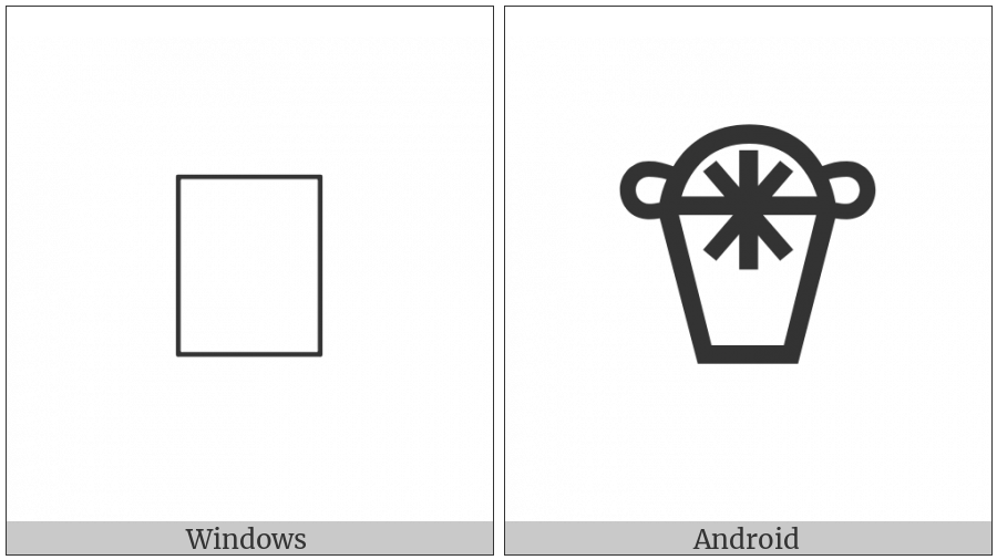 The image below shows how the “Linear A Sign A656” symbol might look like on different operating systems. If the font in which this web site is displayed does not contain the symbol and there is no fallback font able to render it, you can use the image below to get an idea of what it should look like.