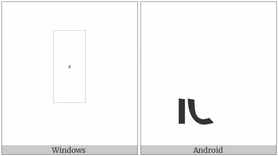 The image below shows how the “Tai Tham Vowel Sign Uu” symbol might look like on different operating systems. If the font in which this web site is displayed does not contain the symbol and there is no fallback font able to render it, you can use the image below to get an idea of what it should look like.