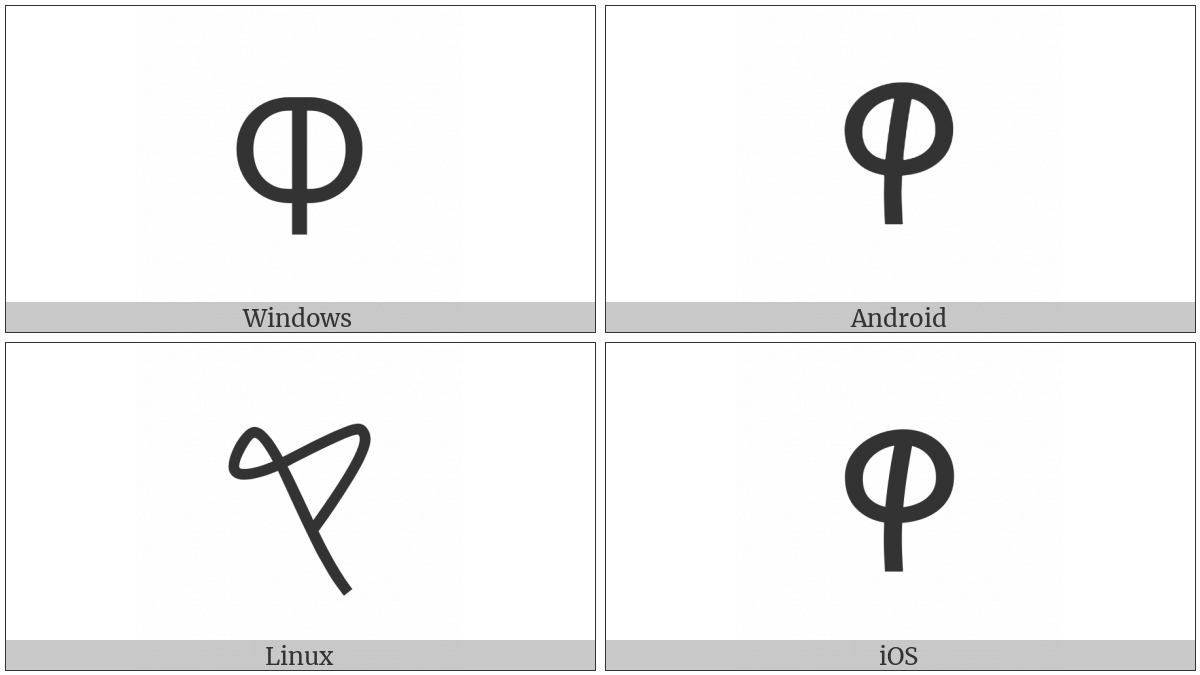 The image below shows how the “Phoenician Letter Qof” symbol might look like on different operating systems. If the font in which this web site is displayed does not contain the symbol and there is no fallback font able to render it, you can use the image below to get an idea of what it should look like.
