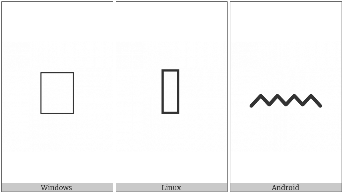 The image below shows how the “Meroitic Hieroglyphic Letter Na-2” symbol might look like on different operating systems. If the font in which this web site is displayed does not contain the symbol and there is no fallback font able to render it, you can use the image below to get an idea of what it should look like.