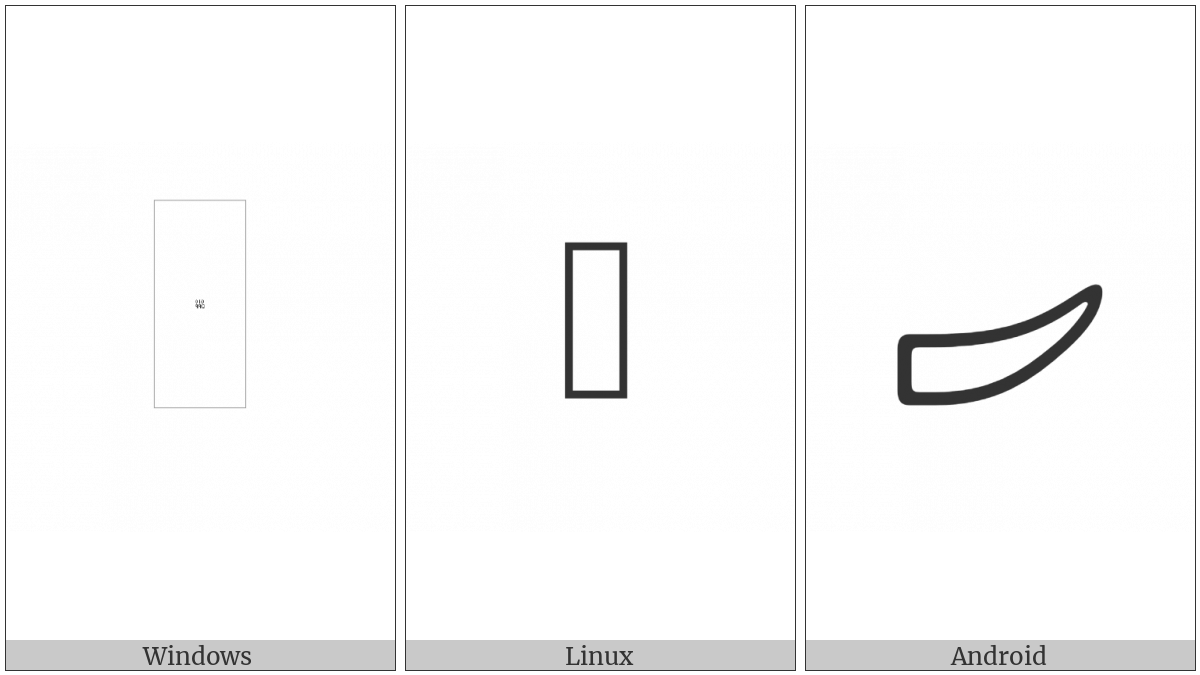 The image below shows how the “Meroitic Hieroglyphic Letter To” symbol might look like on different operating systems. If the font in which this web site is displayed does not contain the symbol and there is no fallback font able to render it, you can use the image below to get an idea of what it should look like.